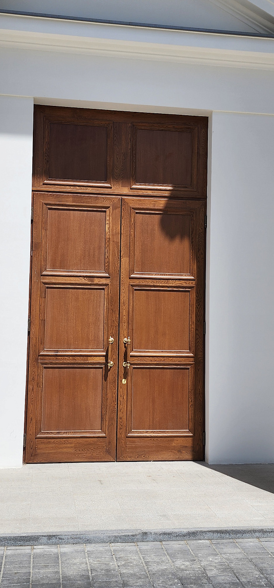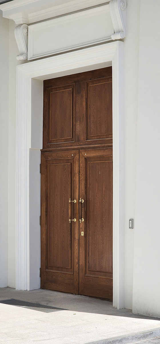 Воссоздание деревянных окон из дуба, реставрация и воссоздание центральных входных дверей.