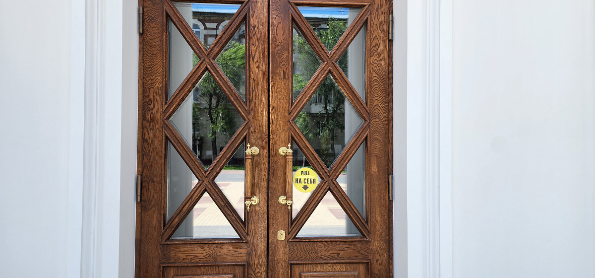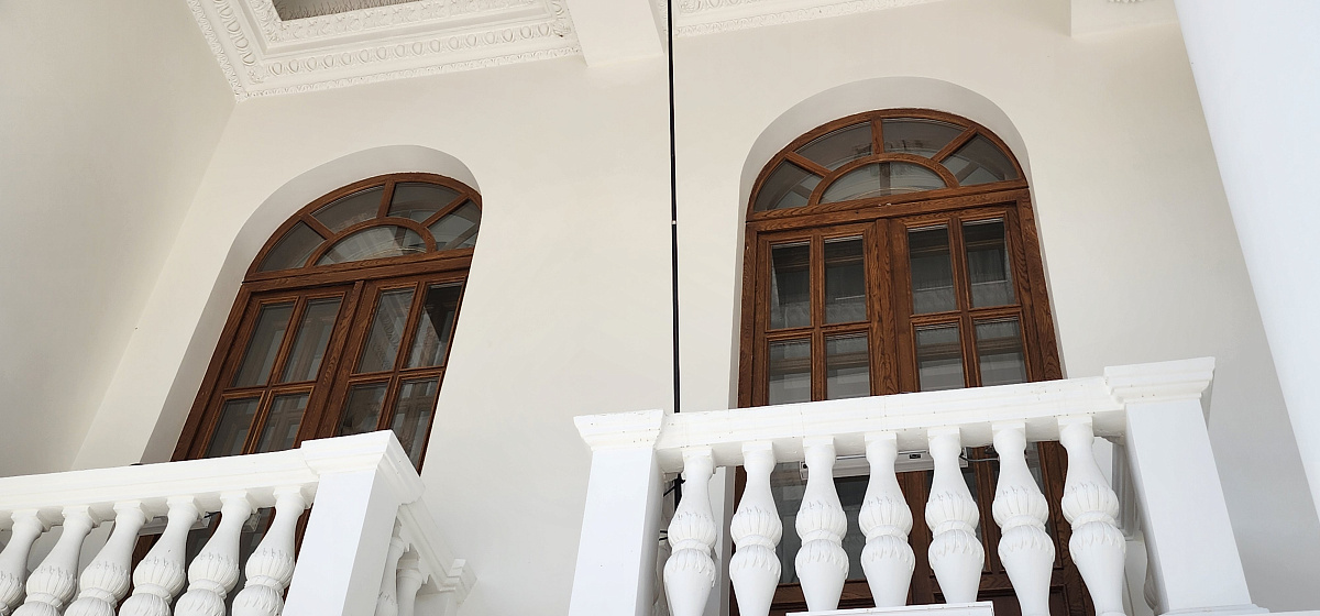 Воссоздание деревянных исторических окон и витражей из дуба, реставрация наружных исторических дверей, изготовление и монтаж внутренних дверей по историческим аналогам.